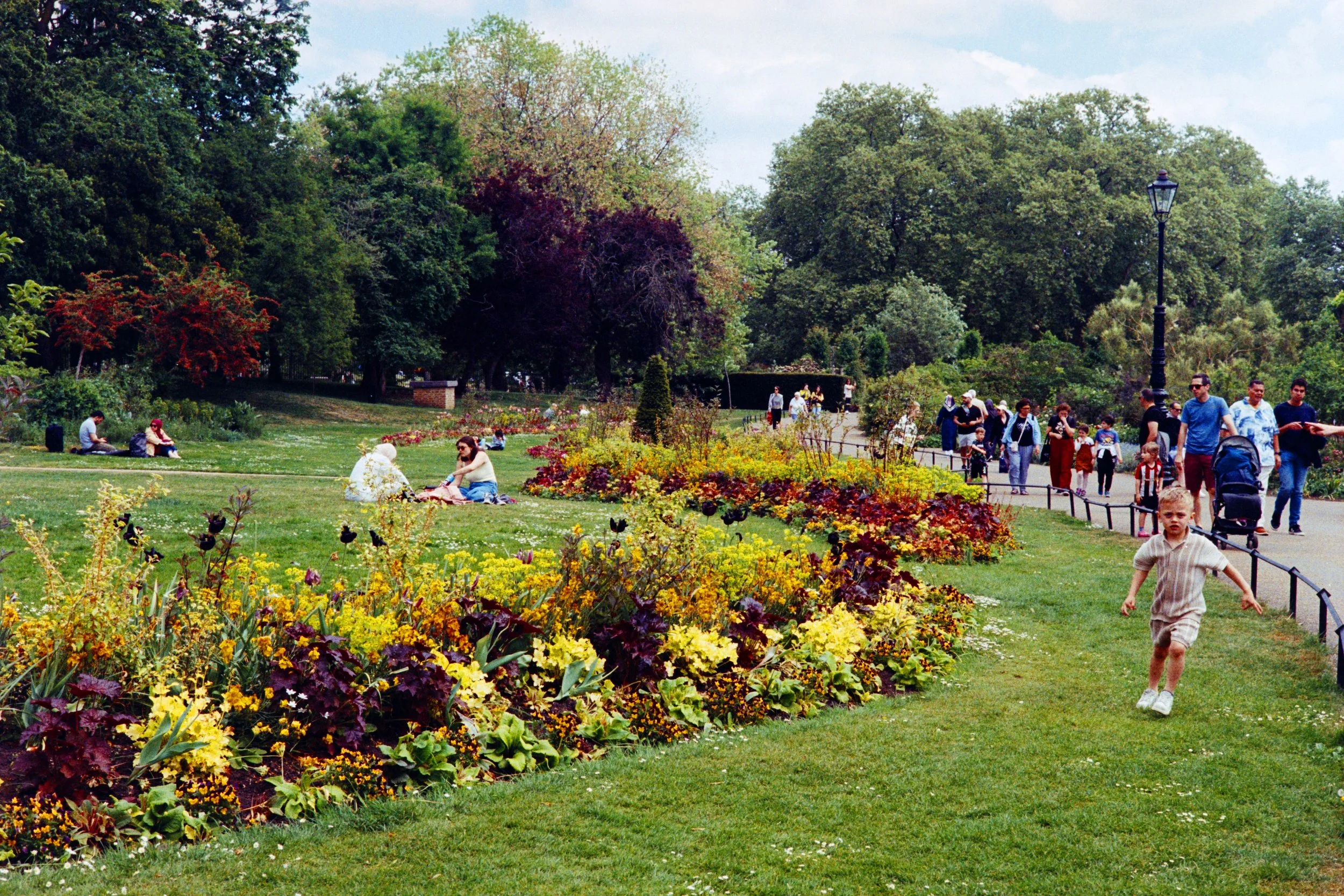 Summer time in Hyde Park during mid-day. Lots of people out and about enjoying the space and warm weather.